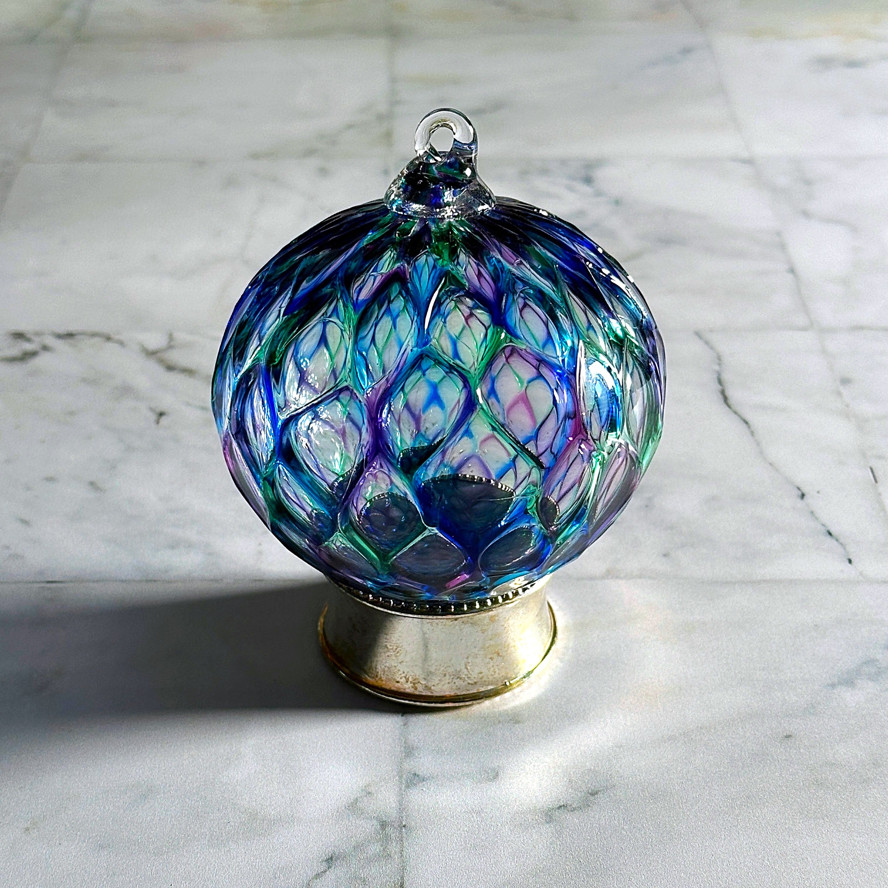 This glass witch’s bulb (so they’re called in my neck of the woods) is absolutely gorgeous. I have an antique and modern glass collection in the bay window of our circa 1817 farmhouse and this will look stunning hanging in the filtered sunlight.